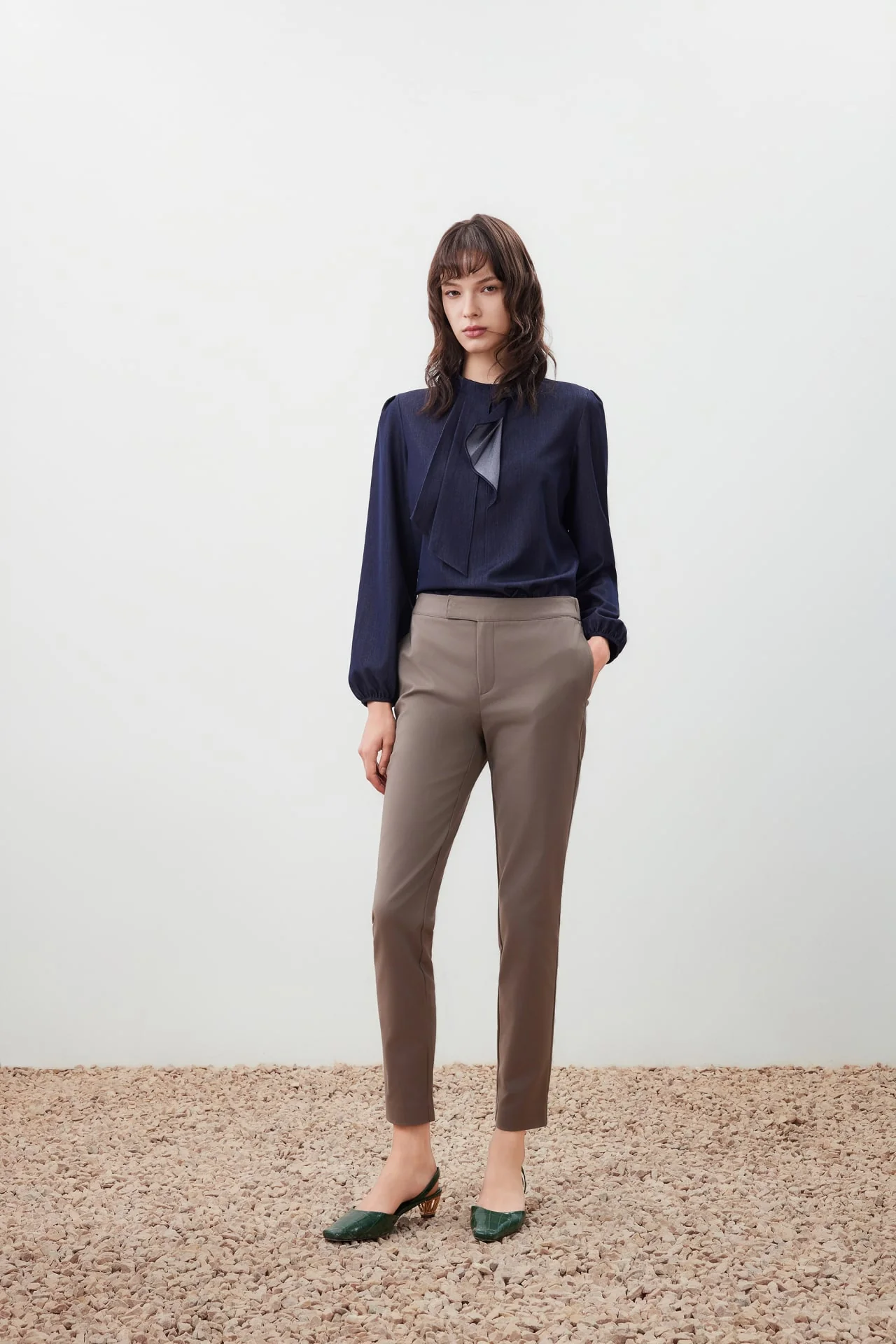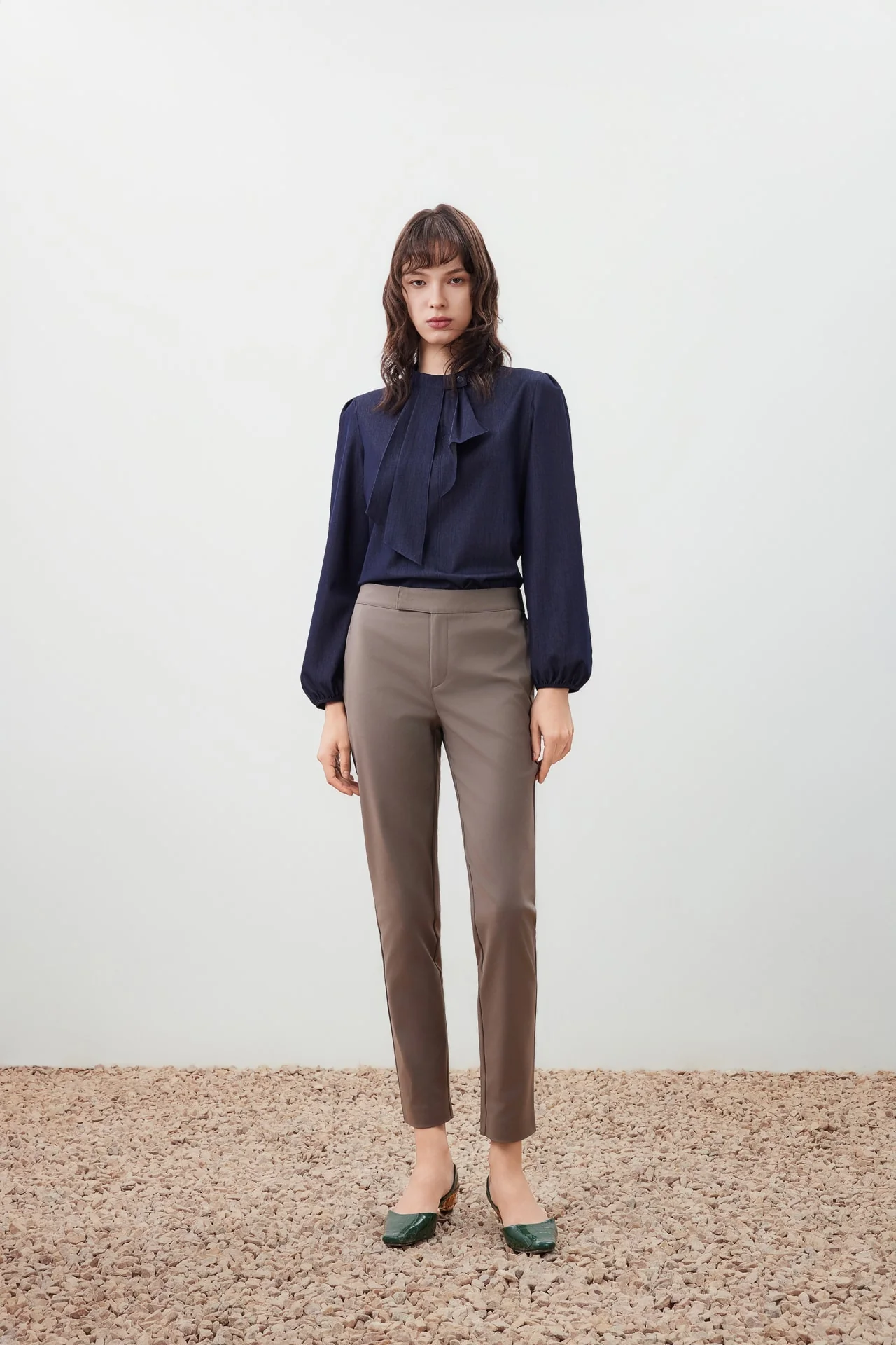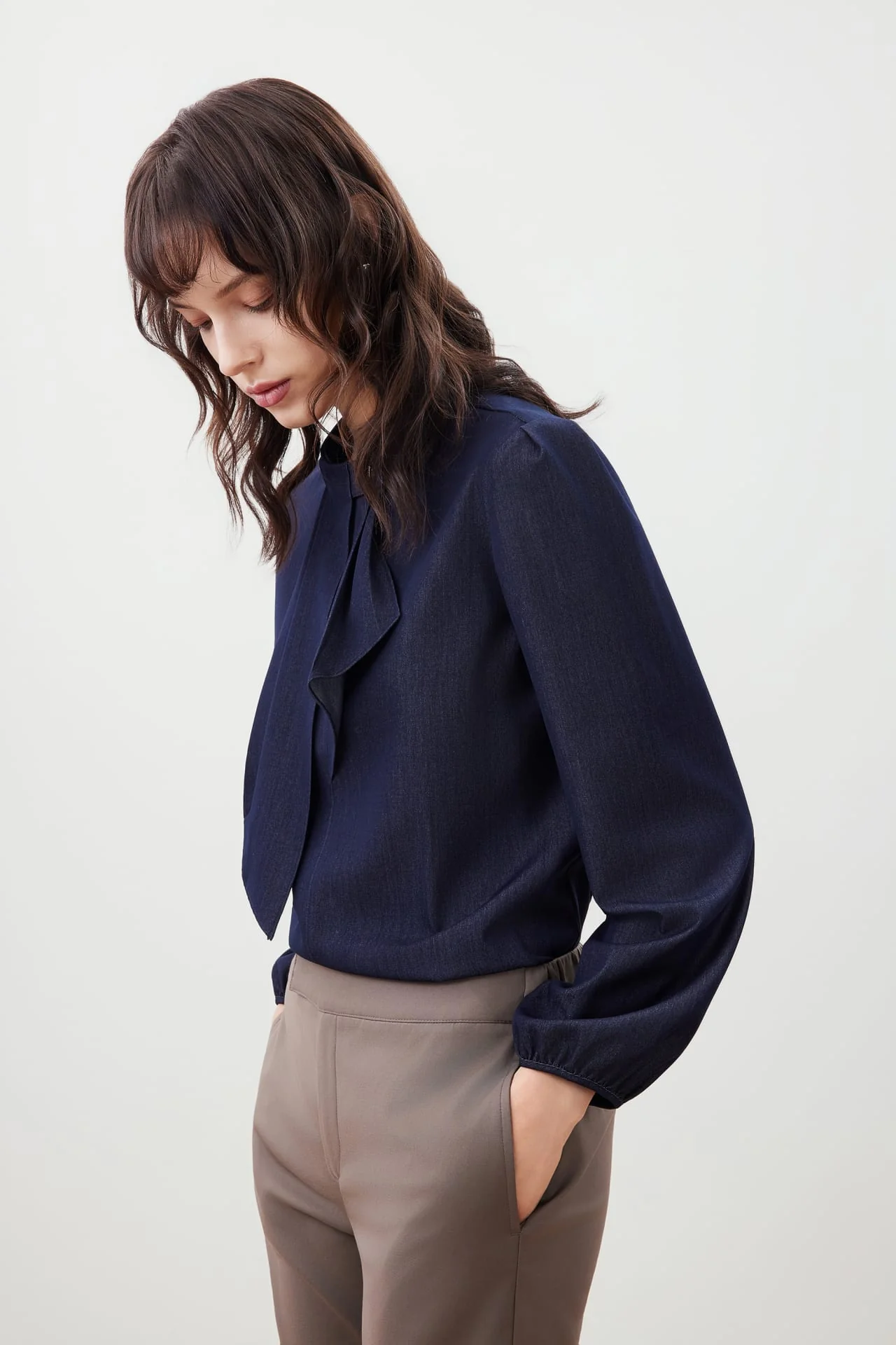 The Ruffle Detail Stand Collar Blouse helps you transition smoothly from day to night. Made from a soft polyester-rayon blend with added stretch for comfort. Designed with a stand collar for a refined finish. Built for versatility whether you’re working or unwinding. Designed for those who value ease without compromise.
