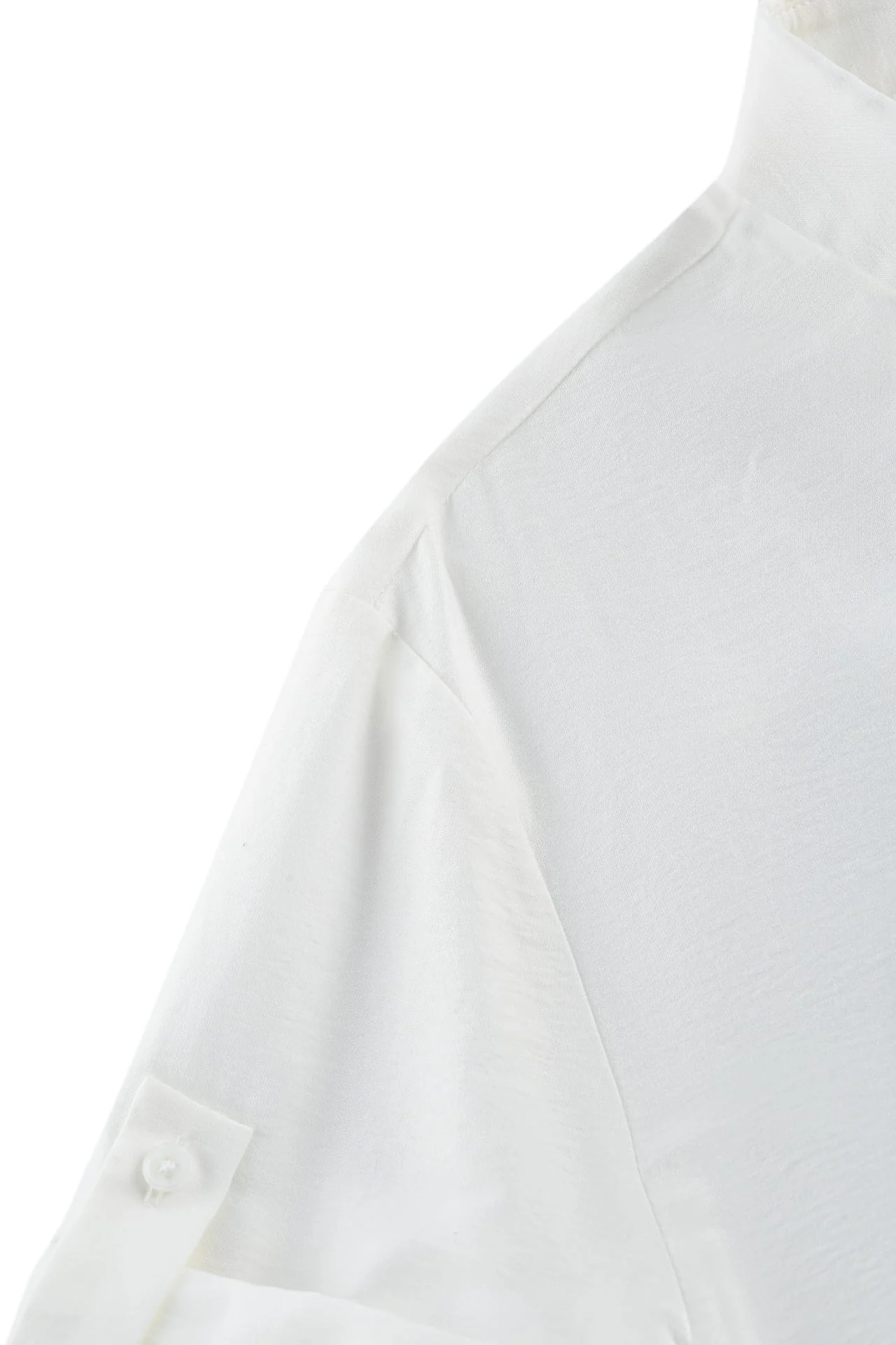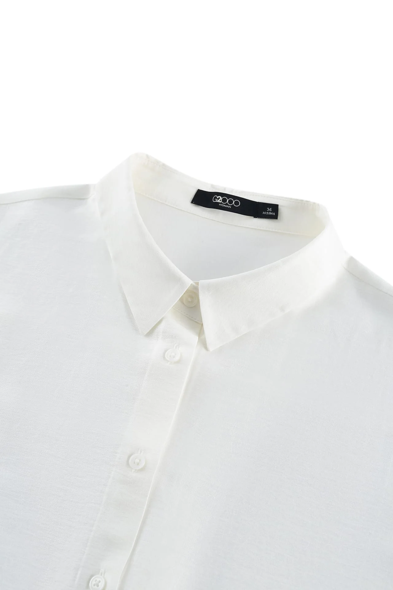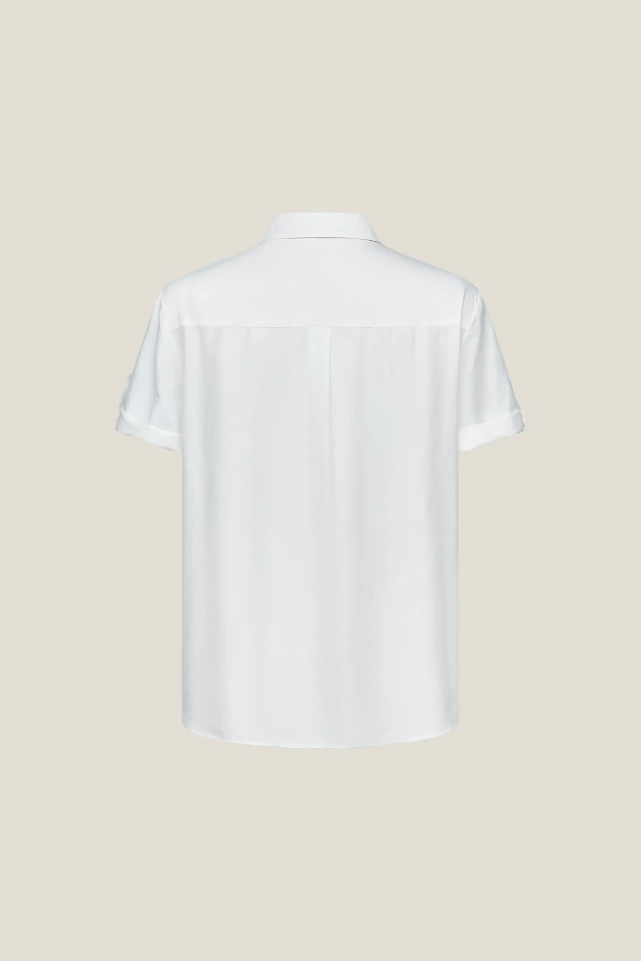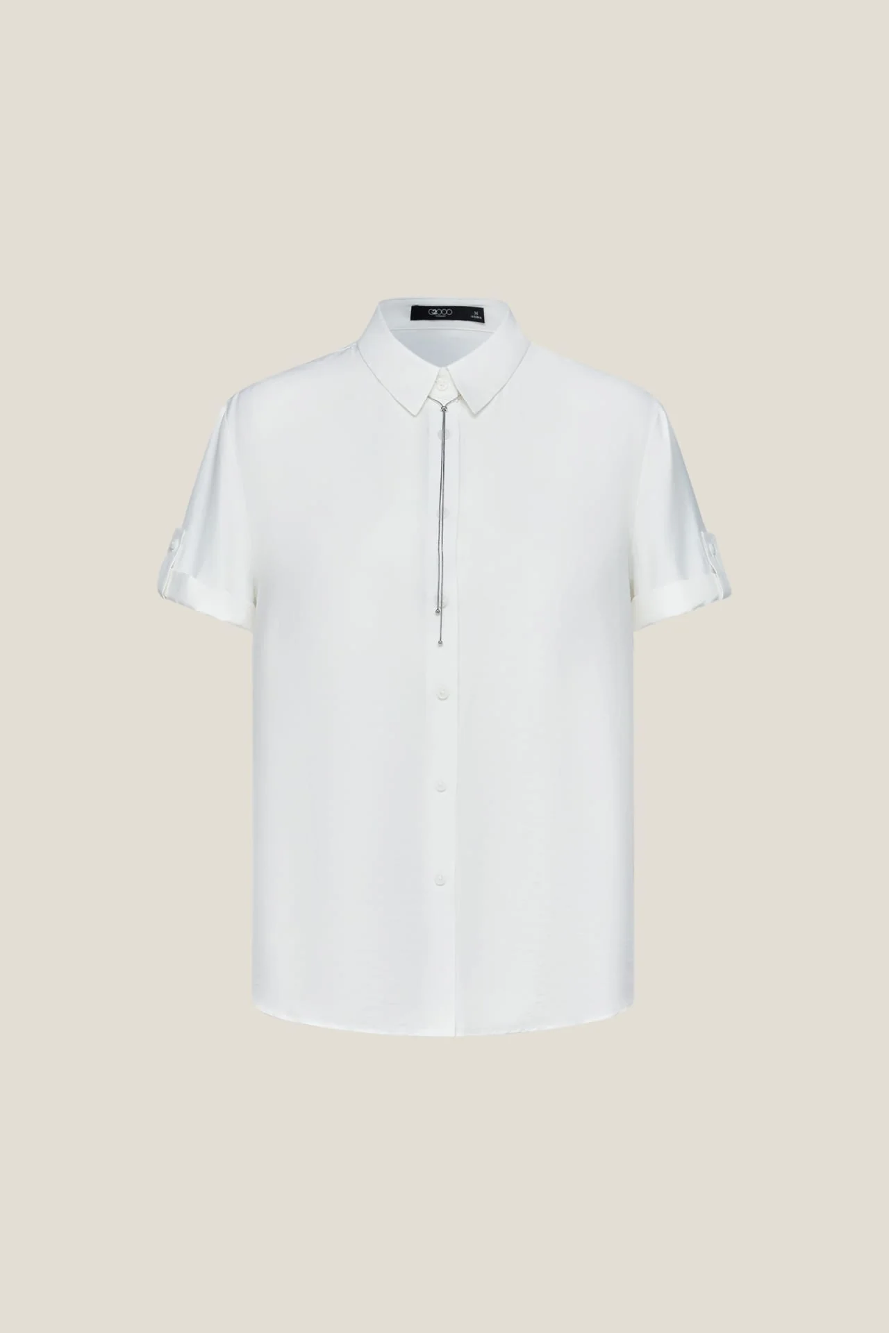 Accessorize with ease in this Shirt Collar Blouse with Necklace. The viscose-nylon blend creates fluid drape in a loose shape, while the included necklace adds instant polish. The regular fit ensures comfortable, sophisticated wear.